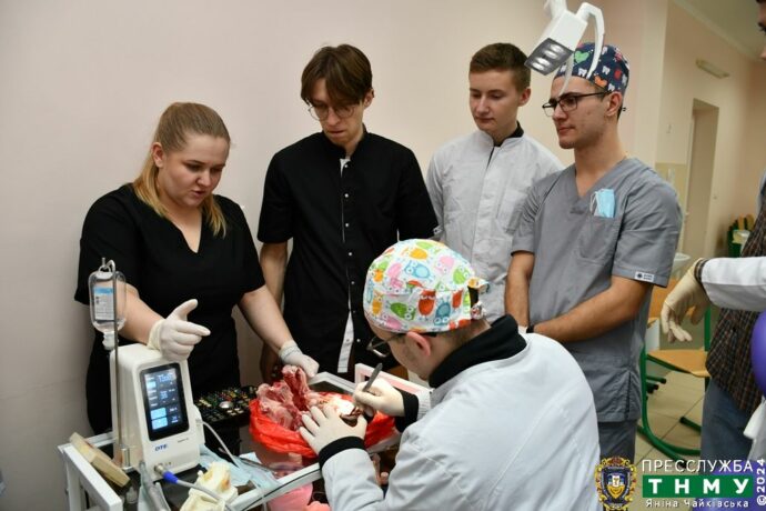 On December 3, 2024, at the invitation of Associate Professors Oksana Lebid and Kateryna Duda from the Department of Dentistry at the Faculty of Postgraduate Education of TNMU, a representative of the company “IMPLANTSWISS,” Nadiya Antoniv, visited intern doctors and course attendees to conduct a practical workshop on implantology.