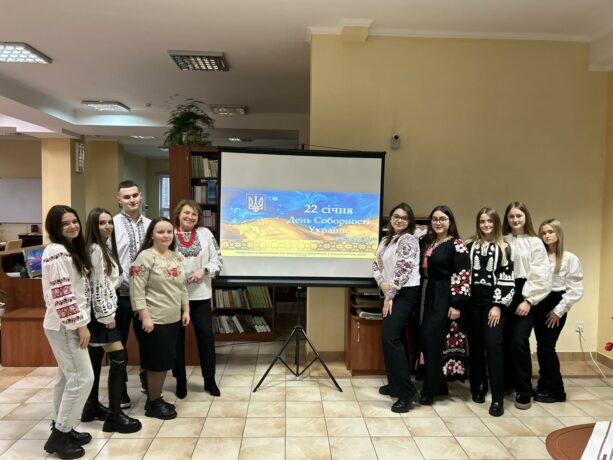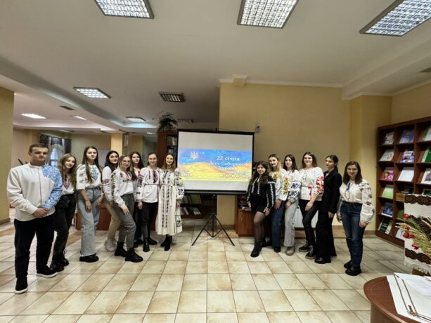 On January 22, 2025, in honor of Ukraine Unity Day, the staff of the Department of Pharmacy Management and Economics with Drug Technology, together with students, gathered in the library of Ternopil National Medical University to mark the 106th anniversary of a significant event for Ukrainians—the unity of Ukrainian lands from West to East—and to reflect on the value of the lives of soldiers who continue to sacrifice for the unity, sovereignty, and independence of our nation.
