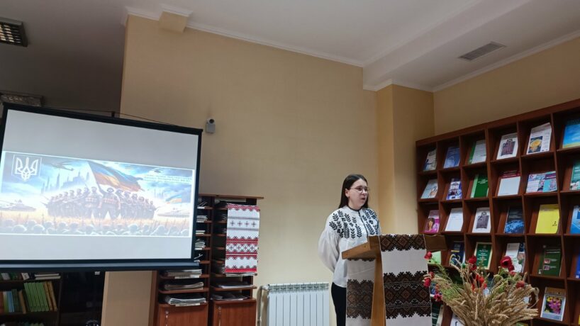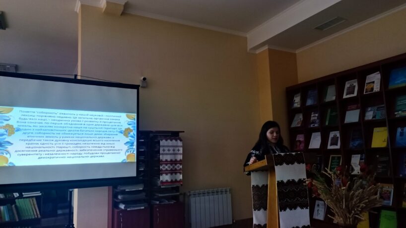 Student Valeriia Volosiuk prepared a presentation titled “10 Interesting Facts About Ukraine Unity Day”, which helped attendees analyze the challenging path Ukrainians have taken and draw parallels with current events.