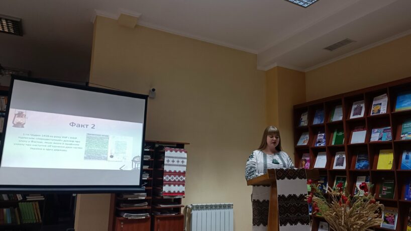 The traditional educational event began with a moment of silence and the National Anthem of Ukraine. Throughout the event, students reminded attendees of the events that took place in January 1918 and 1919. They also recited poems by contemporary poets dedicated to Unity Day.