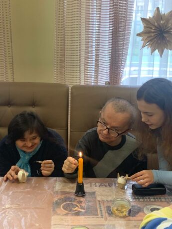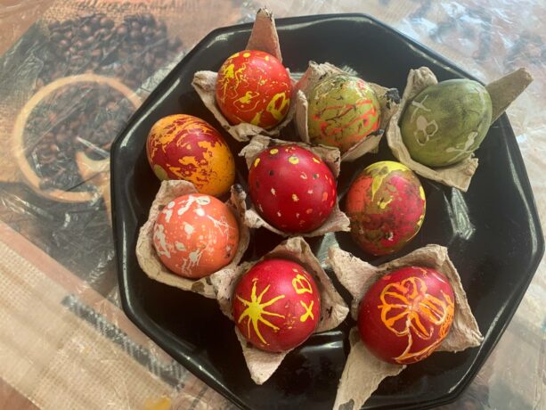 The students prepared everything necessary for the creative process, assisted each participant in working with wax and styluses, and then in dyeing the creations. In return, our guests invited the students to a festive post-Easter concert, which everyone is now eagerly looking forward to.