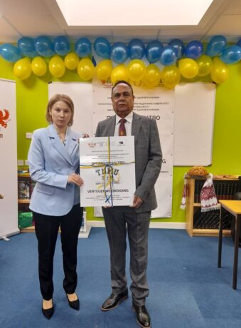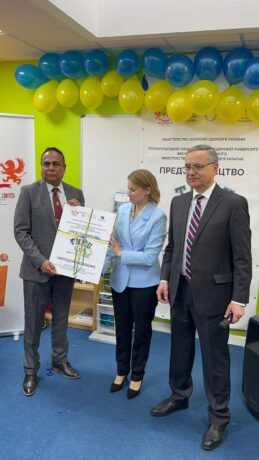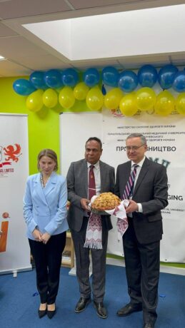 During the official ceremony, words of support and congratulations were delivered by TNMU Rector Mykhailo Korda; founder and head of the Charitable Foundation “Institute of Women’s Folk Diplomacy” Lyudmyla Onofryiese; representative of St. Mary’s Ukrainian School (Free Space Support Project for Displaced Ukrainians Family) Svitlana Opanasenko; Director of the National Academy of Culture and Arts Management’s representation in Belgium and founder of the European Collaborative Institute Rena Faradzheva; founder and president of Education in Europe LLC Prithviraj Ghosh; General Director of the Institute of Women’s Folk Diplomacy of Ukraine Yaroslava Bilan; and founder of Educare International Limited and Director of TNMU’s London branch, Razi Uddin.