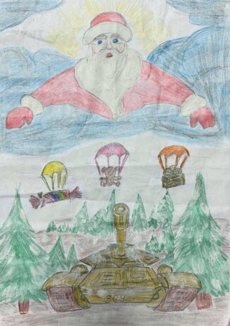 “The exhibition features 25 drawings by Ukrainian children about the Russian-Ukrainian war. All these works were submitted by children from the front-line territories of Donetsk region thanks to a member of the Armed Forces of Ukraine, Mr. Vasyl. In a child’s eyes, war always looks the same. Regardless of time or place, it is a great evil — and children are always its victims. The drawings on display are deeply touching testimonies of war through the eyes of children,” said Lyudmyla Onofryiese, founder and head of the NGO “Institute of Women’s Folk Diplomacy.”