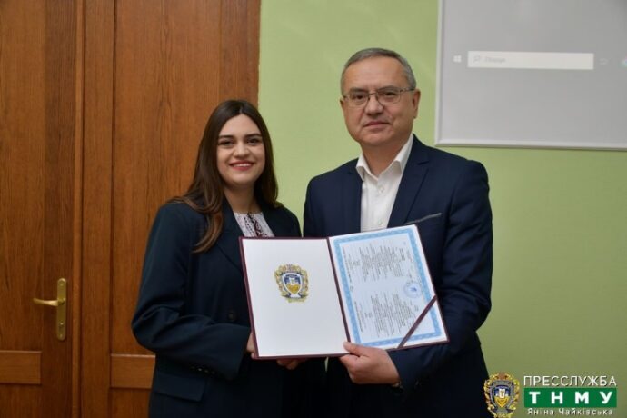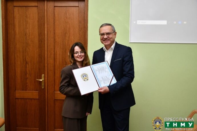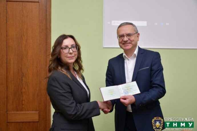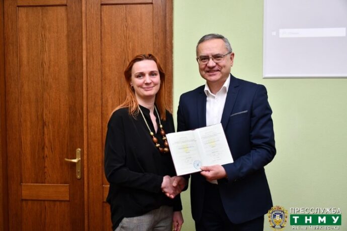 At the beginning of the meeting, in a ceremonial setting, the Rector presented the Doctor of Science diploma to Tetiana Kovalchuk.