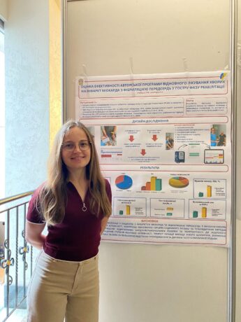Great interest among specialists was sparked by the poster presentation “Evaluation of the Effectiveness of an Author’s Program for the Rehabilitation of Patients with Myocardial Infarction and Atrial Fibrillation in the Acute Phase of Rehabilitation,” delivered by postgraduate student Ulyana Dmyterko.