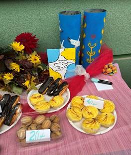 Together with their group curators, students prepared not only delicious homemade dishes but also handmade crafts — braided bracelets, live flower compositions, and painted shell casings — to raise more funds for our brave soldiers who fight daily for our freedom and the possibility to hold such events as a sincere token of gratitude.