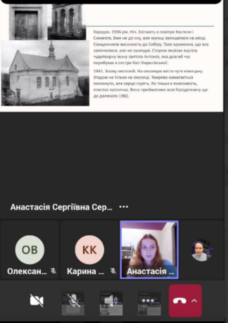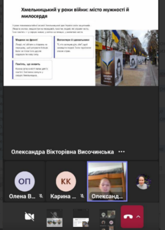 The first presentation, “Khmelnytskyi – a City that Heals and Inspires,” was delivered by Oleksandra Vysochynska, a student of group MM-220.