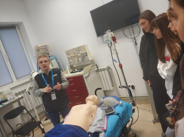 The students tried themselves in the role of life-savers: under the guidance of the center’s specialists, they performed chest compressions during basic resuscitation procedures, located a pulse, listened to breathing, and assessed the “patient’s” response. During the visit, the students were also interested in learning about the specifics of studying at a medical university and the opportunities available in the healthcare field.