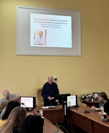 Professor Kondratiuk’s daughter, Professor Olena Lototska, Head of the Department of General Hygiene and Ecology, movingly recounted his biography, the key stages of his professional development, and his scientific achievements.