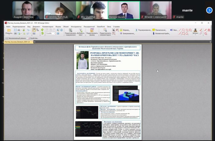 Valerii Ilchyk, a 10th-grade student of Buchach Lyceum of the Buchach City Council, with the project “Development of a Program for Monitoring Currency Dynamics in Real Time.”