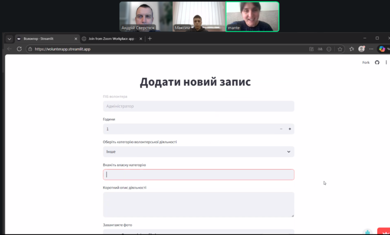 Maksym Hnatiuk, a 9th-grade student of the general secondary education institution in Husiatyn, with the project “Development of the Volunteer Way Information System.”