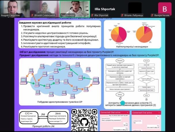 Nazarii Tysh, an 11th-grade student of the Ivan Franko Ternopil Academic Lyceum “Ukrainian Gymnasium”, with the project “Creation of a Messenger Based on the Invisible Internet Project.”