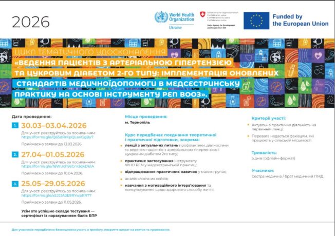 Within the framework of agreements with WHO Ukraine, a series of regional trainings, mentoring visits, and online support sessions for course graduates is planned for 2026. The implementation of this initiative is expected to improve the quality of primary health care services and strengthen the role of nurses in implementing evidence-based practices.