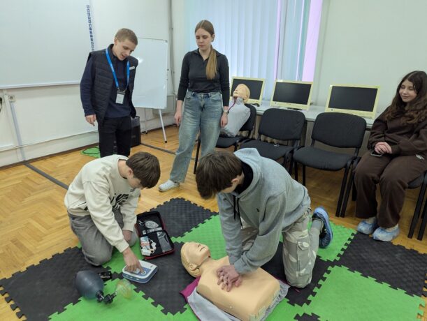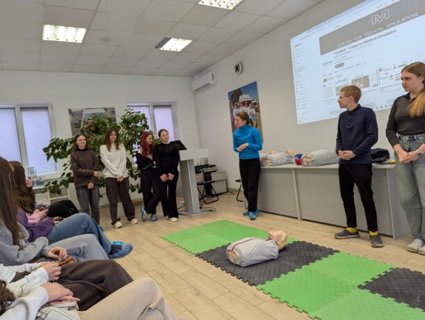 The key event was a practical seminar conducted by the head of the Simulation Training Center, Antonina Chervatiuk. The seminar was also supported by center specialist Oleh Kosinskyi and paramedic students. The main goal of the event was to teach young people the basics of cardiopulmonary resuscitation (CPR), as in today’s challenging conditions, every second can be decisive.