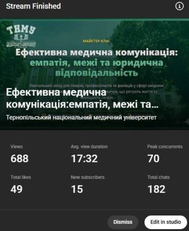 The workshop was conducted live in real time at I. Horbachevsky Ternopil National Medical University, which is an official provider of continuing professional development for healthcare professionals and specialists.