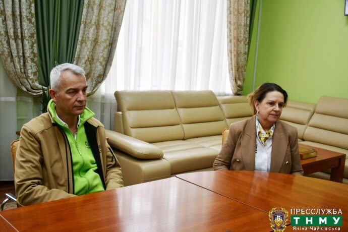 On April 8, 2026, partners and good friends of Ternopil National Medical University — representatives of the Belgian humanitarian mission “Stay Safe” — visited the university. Among them were family physician and General Director of the “Stay Safe” organization, Dr. Günter Constandt, and nurse, palliative care expert, and General Director of the company “Sumacura”, Conny Vervynck.