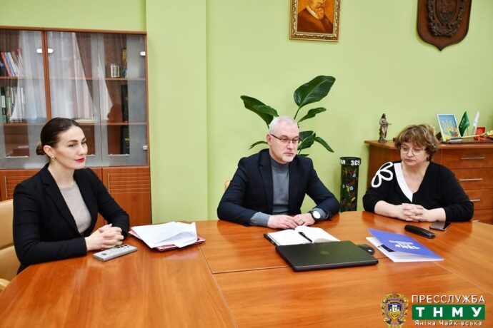 The meeting was also attended by the Director of the Educational and Scientific Institute of Nursing, Associate Professor Svitlana Danchak, Acting Vice-Rector for Research, Professor Oleksandra Oleshchuk, and Acting Deputy Rector for International Relations, Professor Mykhailo Korda.