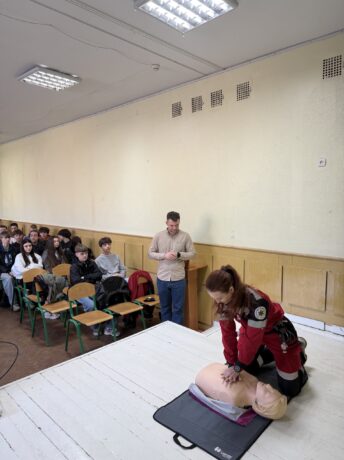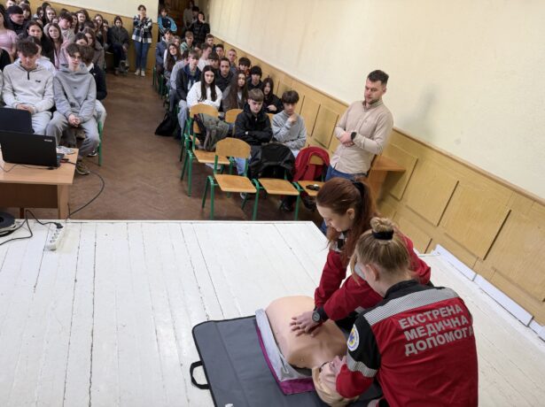 Roman Huk, together with future paramedics, demonstrated the rules of providing first aid. The students actively participated in the мастер-class.