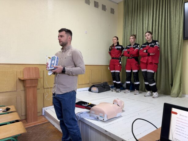 On April 22, 2026, the Executive Secretary of the Admissions Committee of Ternopil National Medical University, Associate Professor Oksana Lebid, Assistant of the Department of Emergency and Simulation Medicine Roman Huk, and students of the “Paramedic” educational program met with 11th-grade students of the Ivanna Blazhkevych Ternopil School – Economic Lyceum No. 9.