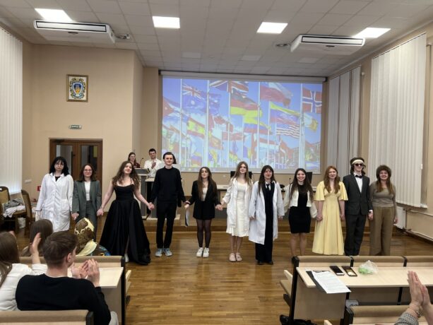 Particular admiration was inspired by theatrical performances in which students demonstrated a high level of acting skills and creativity. These included a humorous medical-themed interpretation of the fairy tale “Cinderella,” a comic sketch about language misunderstandings in dental practice titled “Without a Translator: Mission (Im)possible,” the pantomime “Adventures on Doroshenko Street,” as well as a vivid performance “Organ Wars: Revolution.”