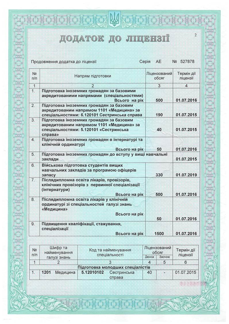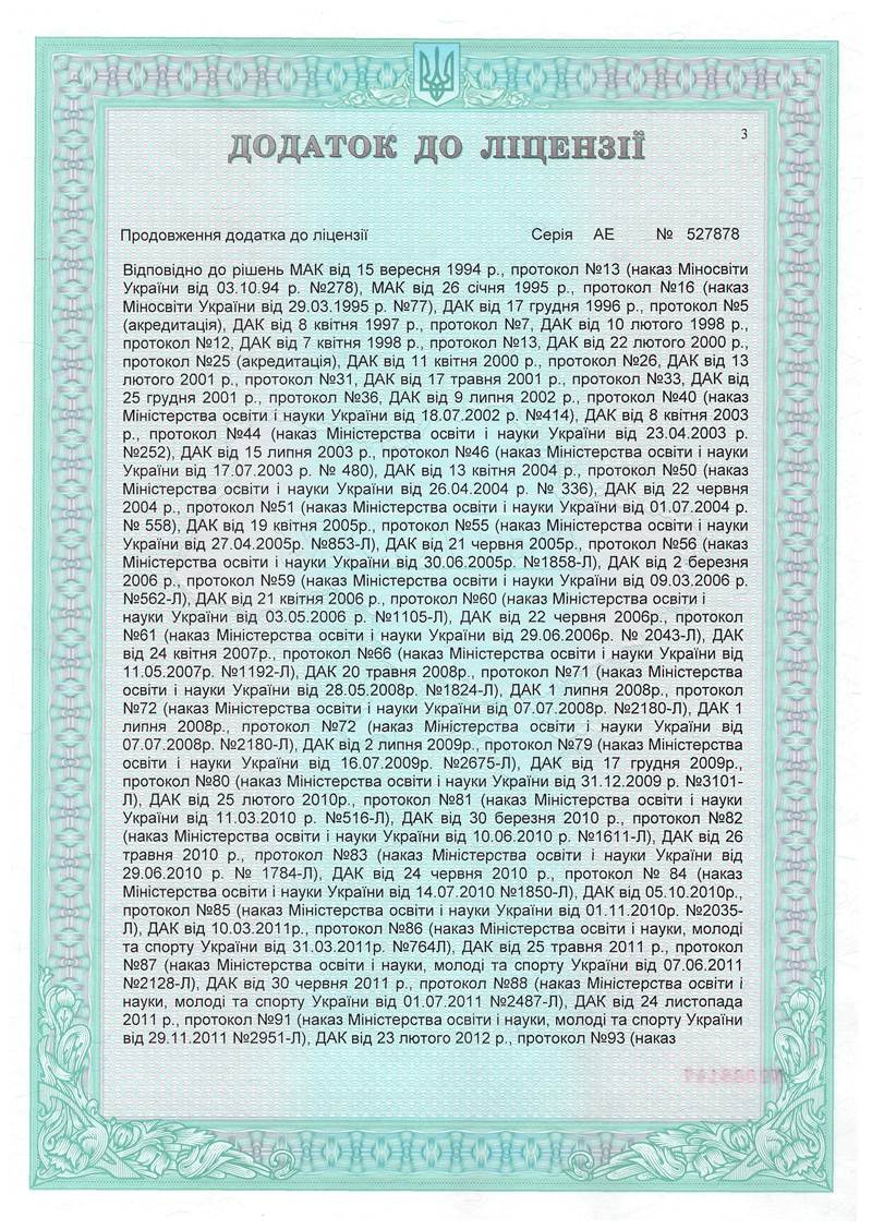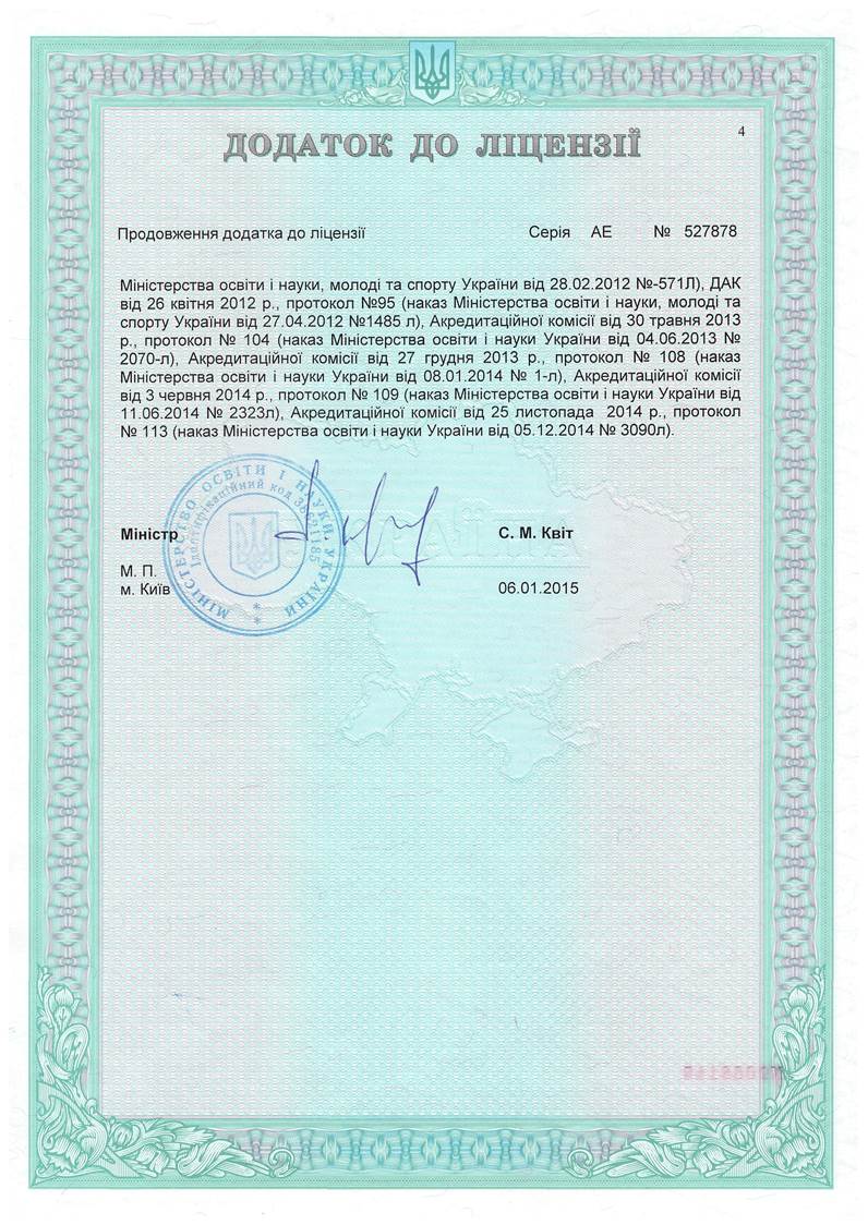 Відомості щодо права здійснення освітньої діяльності у сфері післядипломної освіти для осіб з вищою освітою