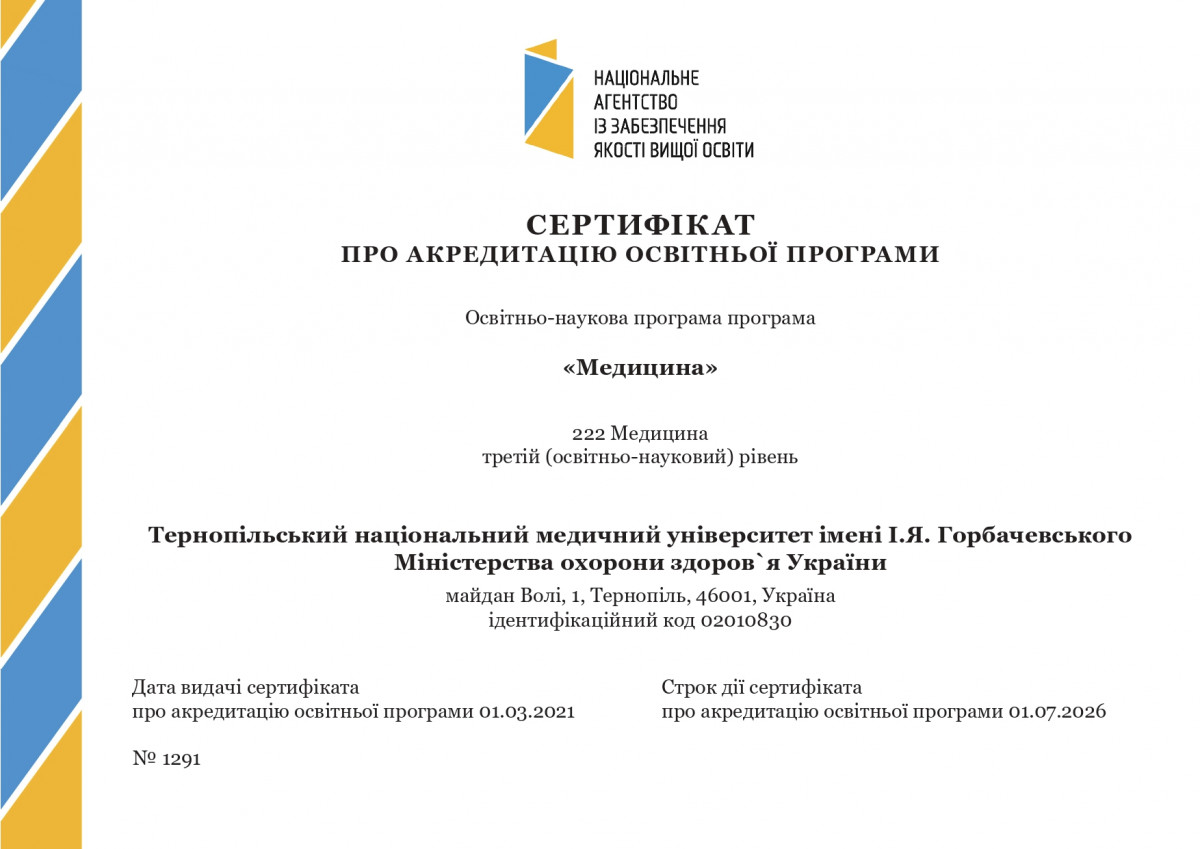 ТЕРНОПІЛЬСЬКИЙ НАЦІОНАЛЬНИЙ МЕДИЧНИЙ УНІВЕРСИТЕТ імені І.Я. Горбачевського