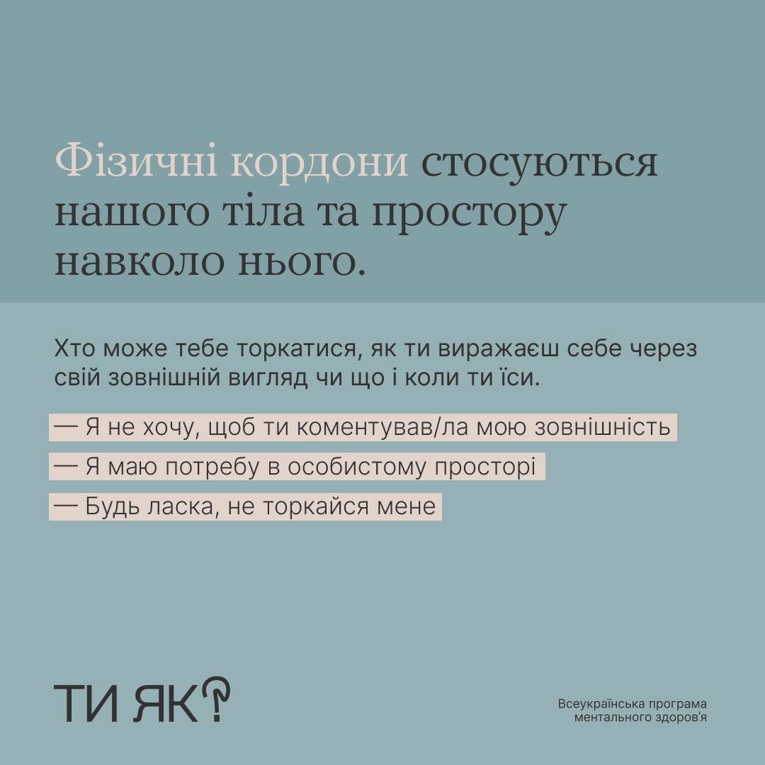 Існують різні типи особистих кордонів, і кожен з яких дуже важливий для нашого щастя. У каруселі говоримо про пʼять з них