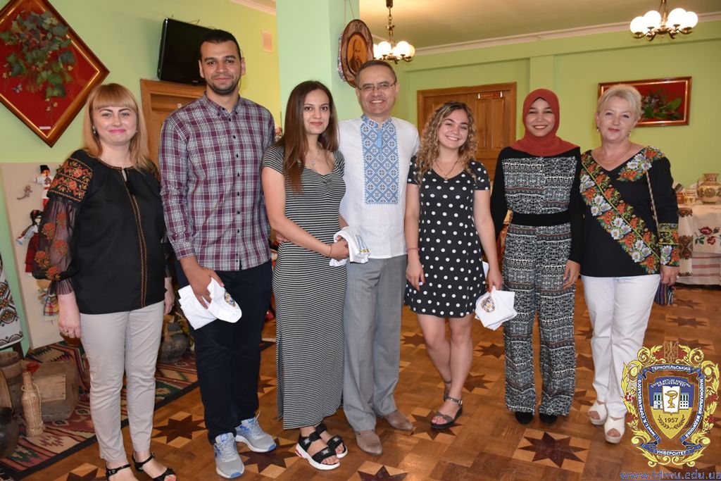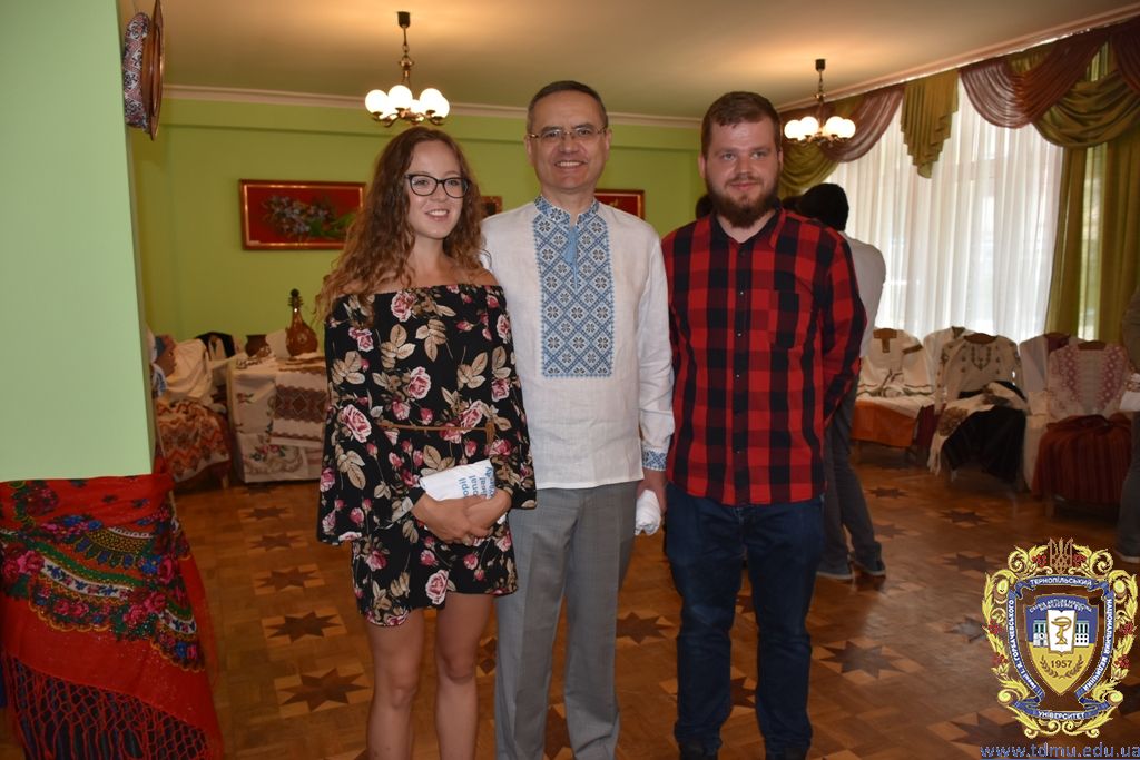 After that, the guests had the opportunity to perceive the rich heritage of Ukrainian culture during the visit to the ethnographic exhibition of embroidered clothes, antiquities, and household items. A unique exposition was organized by the family of the medical university professor Orysia Smachylo.