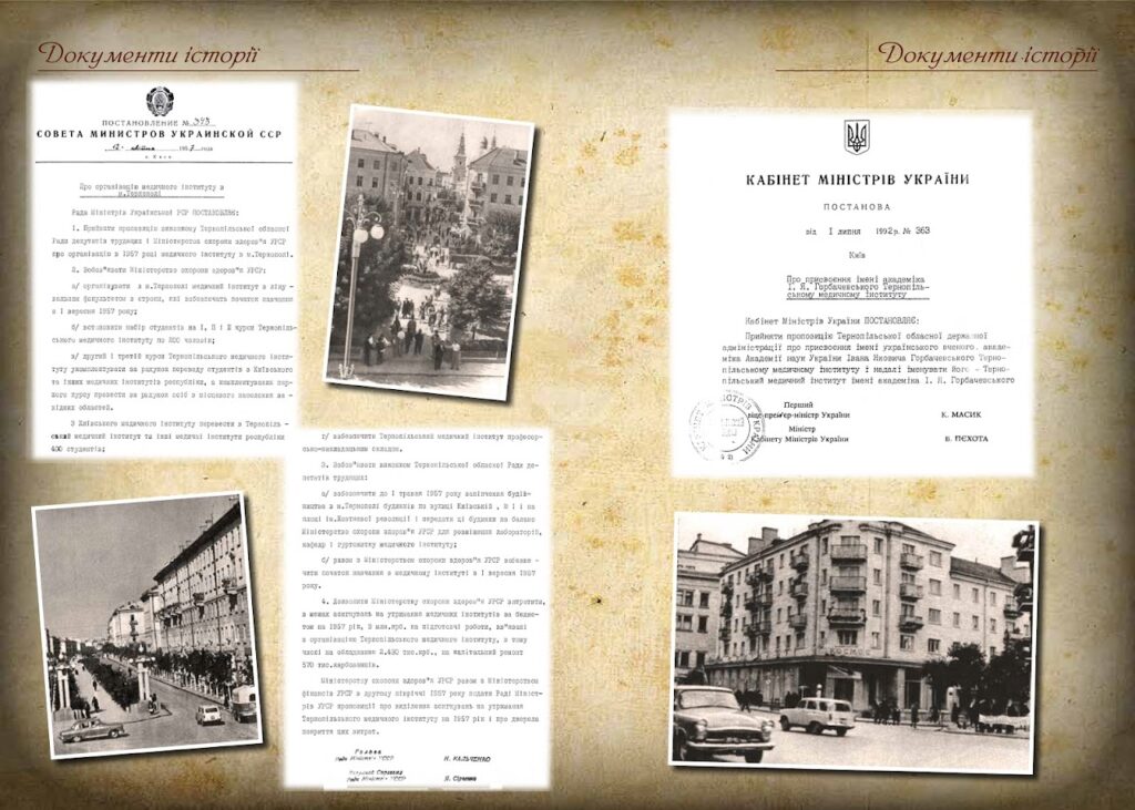The history of Ternopil National Medical University starts back in 1957, when the Ternopil Medical Institute was founded in accordance with the resolution of the Council of Ministers of the Ukrainian SSR No. 343 dated April 12, 1957.