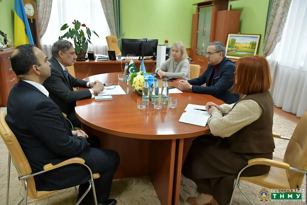 Distinguished guests met with the Rector of TNMU, Professor Mykhaylo Korda, Deputy Rector for International Relations Natalia Lisnychuk, Dean of the International Students’ Faculty, Professor Maria Marushchak regarding the transfer to TNMU of Pakistani students who, with the beginning of the war, were forced to evacuate and leave their studies at medical universities in Ukraine , which are in the frontal zone.