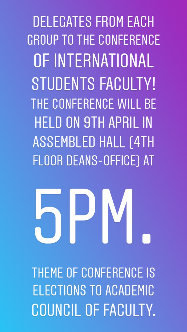 Delegates from each group to the Conference of International Students Faculty! The conference will be held on April, 9, in Assembly Hall (4th floor, dean’s… Читати далі »For the Attention of the Group Delegates!!!