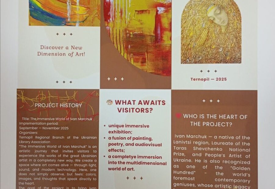 The students and teachers of the Faculty of Foreign Students TNMU visited theremarkable art project “THE IMMERSIVE WORLD OF IVAN MARCHUK”The exhibition is an artistic… Читати далі »The students and teachers of the Faculty of Foreign Students TNMU visited theremarkable art project “THE IMMERSIVE WORLD OF IVAN MARCHUK”