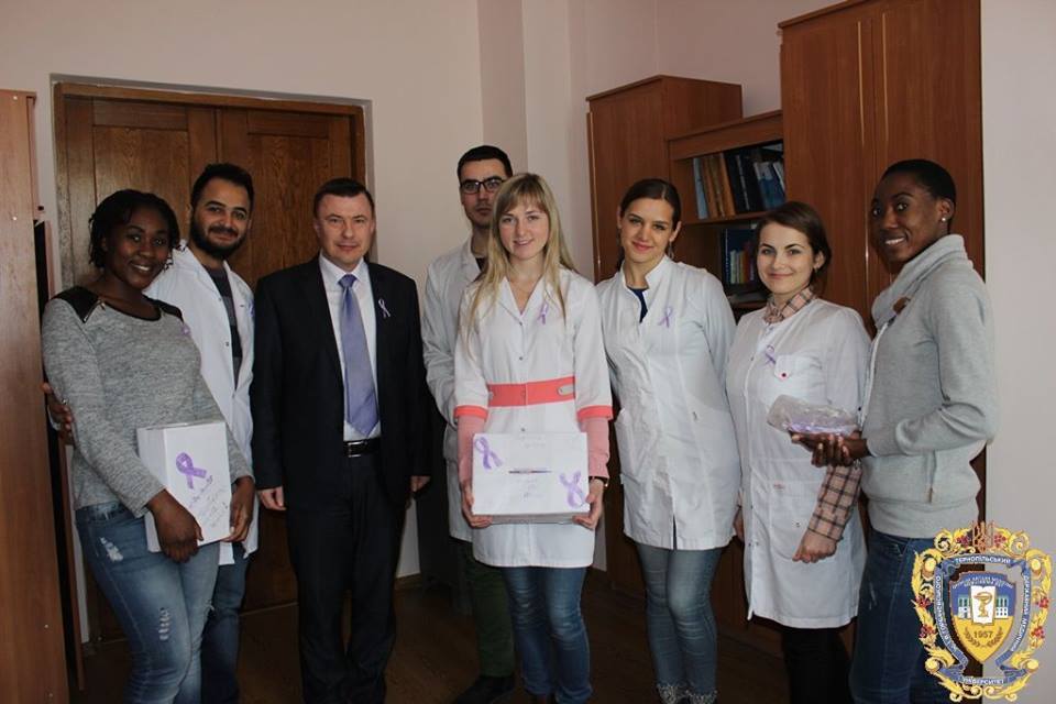 Іноземні студенти беруть активну участь у різноманітних благодійних проектах. Вони допомагали зібрати кошти на придбання електроенцефалографу для безкоштовного обстеження дітей, хворих на епілепсію Тернопільської області. Наші студенти активно долучилися до щорічної міжнародної акції Фіолетовий день, завдання якої – розвіяти міфи про епілепсію і допомогти людям , які живуть з цим діагнозом, і зібрали чималу суму коштів, які передали до Тернопільської обласної дитячої клінічної лікарні.