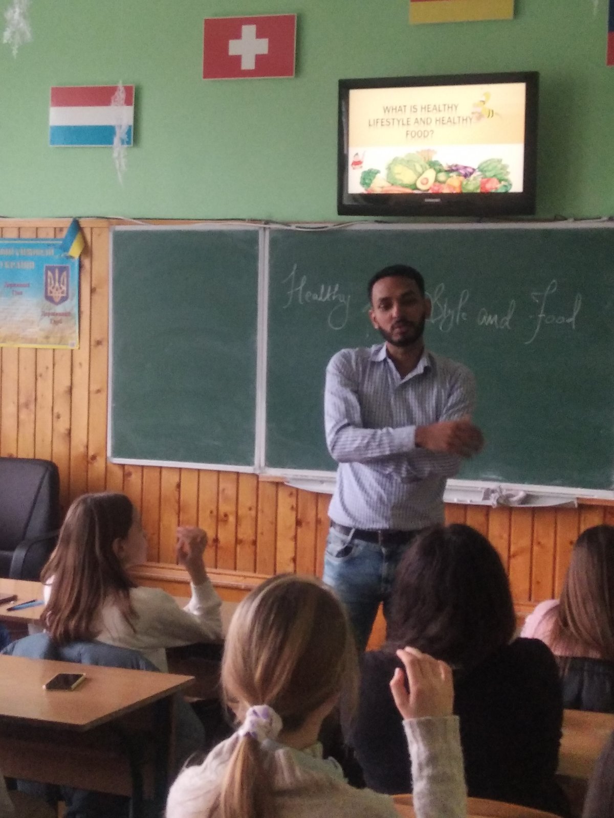 This time he was invited to visit the pupils of the 5th year of study of the Ternopil School No. 3 specialized in learning foreign languages. The topic of healthy nutrition is especially relevant at this age.