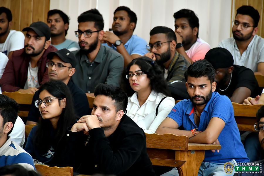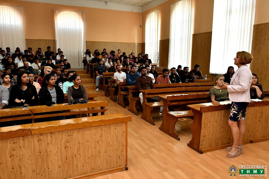 On September 20, 2023, a meeting with the 6th year students of the Faculty of the international students took place. The University officials included Dean of the Faculty, Professor Maria Marushchak, representatives of the Dean’s office, the guarantor of the educational program, Professor Oleksandra Oleshchuk, Associate Professor of the Department of psychiatry, narcology and medical psychology Oleksandra Sas.
