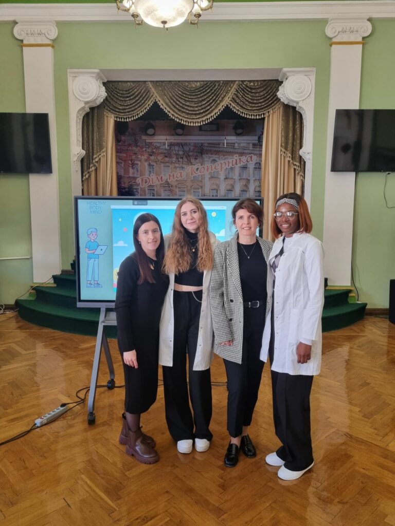 On the 6th of November in I. Franko Ternopil Academic Lyceum “Ukrainian Gymnasium” a lecture was held by two students of the International Student Faculty- Andriana Malynovych (IM526) and Ewaen Osato Osagie (IM526) under the leadership of the Associate Professor of internal medicine department № 2 Roksolana Bodnar about “Healthy body, Healthy mind”.