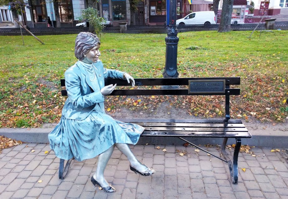 “Random meeting” statue is located in the center of Ternopil near the Theatrical square. It was a gift by American philanthropist and true admirer of Ternopil and its inhabitants. It became a tradition to make photos with this metal female sitting in a city park for all tourists visiting Ternopil. This work of art was designed and built by American sculptor John Stuart Johnson.