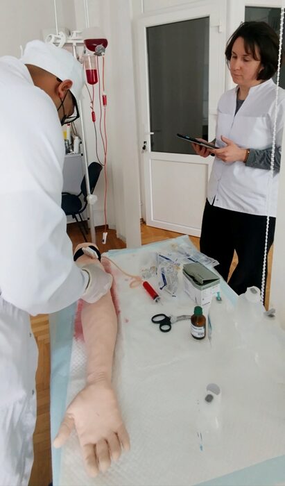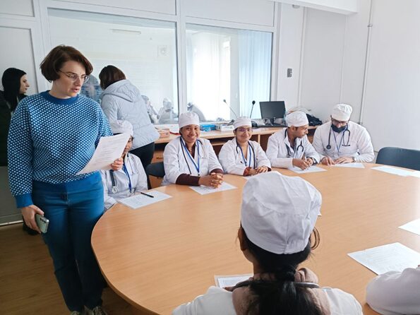 This year, on April 23, 2024, international students of the 3rd year took the objective structured clinical exam (OSCE) on the basis of the Interdepartmental Education and Training Center TESIMED in face-to-face and remote mode. It should be noted that OSCE allows testing of clinical competencies. Students practically showed their acquired knowledge in the relevant subjects at different stations: internal medicine – 2 stations, pediatrics – 1 station, surgery – 2 stations, pre-medical assistance – 1 station. Virtual clinical cases were offered to students to solve in remote mode.