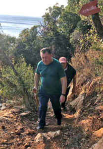 Відпочивши й поспілкувавшись з насельником монастиря ієромонахом Калістом, ми вирушили у дещо більш віддалений Іверський монастир. Дорога в Іверіон (у перекладі з грецької – Грузинський) внаслідок минулорічного стихійного лиха також виявилася складнішою, ніж попередніми роками. Зменшення кількості пішоходів призвело до заростання стежок хащами. Галуззя ожини своїми колючками раз за разом чіплялося за одяг, сповільнюючи та утруднюючи ходу. Місцями буреломи змушували нагинатися. Цю процедуру ускладнювали ще й наплічники з пожитками за плечами. Каміння, яким колись були викладені стежки, було вимите із землі водою та переверталося під ногами. Місцями обвали залишали над проваллями лише вузькі карнизи завширшки 20-25 см. Тут нам якраз і стали в пригоді наші посохи, які ми придбали під час попередніх подорожей. Тим більше, що на стежках круті спуски чергувалися з не менш крутими підйомами. Проте все це лише додавало ентузіазму під час подорожі.