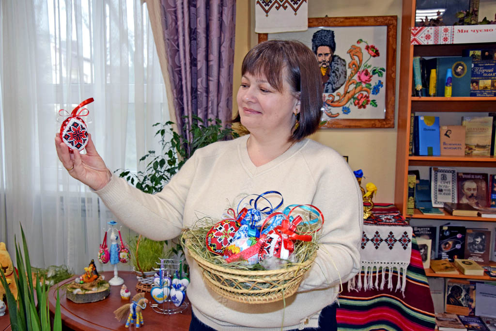 «У кожному з вишитих рукотворів – частина душі наших бібліотекарів, студентів, викладачів», – зазначає директорка університетської книгозбірні. А й справді! Адже великодні яйця вишивали-виготовляли всі понад двадцять працівників бібліотеки – директорка, бібліотекарки, прибиральниці, гардеробниці, чергові. Бібліотекарка Галина Галат зізнається, що вишивала хіба в дитинстві. Коли ж її колеги стали вишивати речі з доброчинною метою, то «з великим задоволенням узялася до роботи». А от бібліотекарка Євгенія Демків – знана вишивальниця. В її доробку дуже багато вишитих картин, навіть портрет доньки. Мала віртуальну виставку власних вишитих робіт. Пані Євгенія чи не найбільше доклалася до творення вишитих писанок. На передовій нині її невістка. Тож, каже, добре знає, що потребують наші захисники та захисниці.