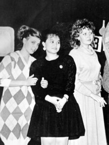 Олена ПРОЦІВ (ліворуч) – студентка 2 курсу Терно-пільського педінституту, з однокурсницями Наталею КІМ (у центрі) та Світланою ПАСІЧНИК (праворуч), 1989 р.