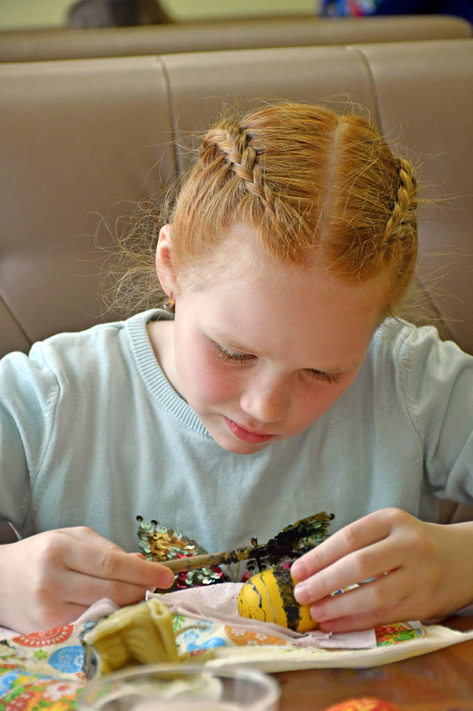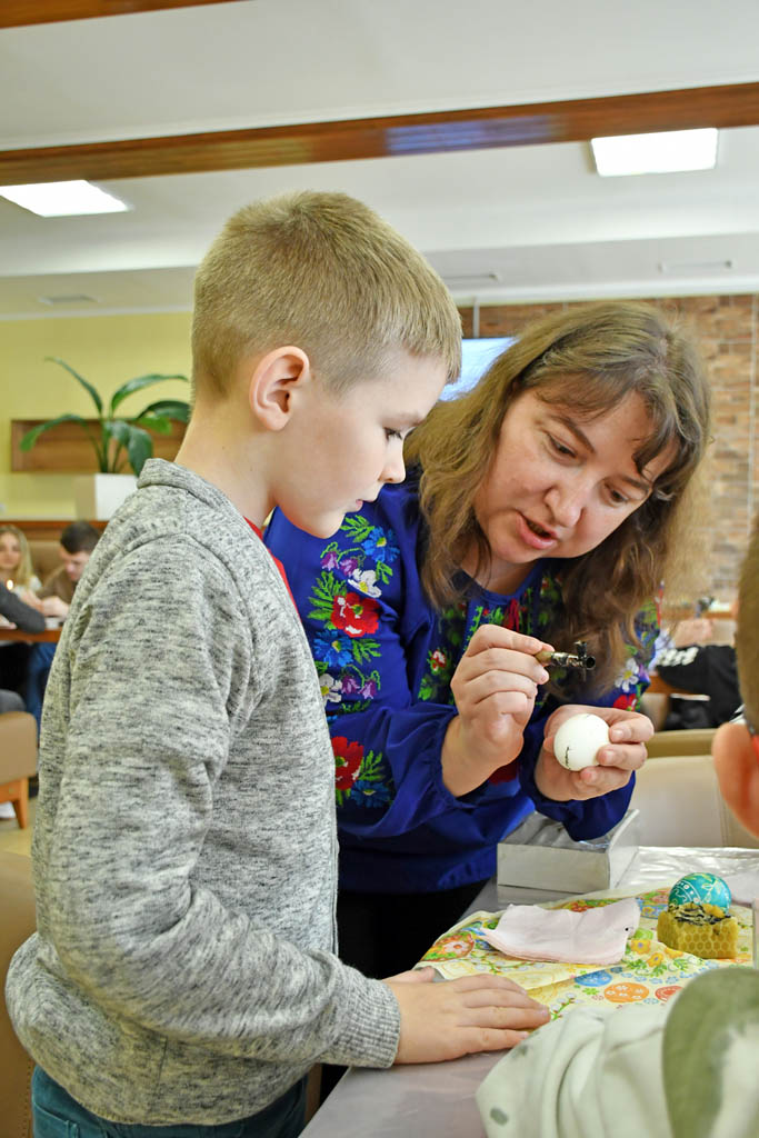 Більшість учасників майстер-класу вперше у своєму житті взялися за писачки, але дуже вправно створили свої дебютні великодні атрибути. Вікторія з дітьми приїхала з Житомирщини. Вони тепер живуть у Тернополі й не пропускають жодної нагоди повчитися новому. Пані навіть не уявляла, що колись займатиметься подібним. Артемко з Лізою кажуть, що свої писанки теж обов’язково покладуть до святкового кошика.