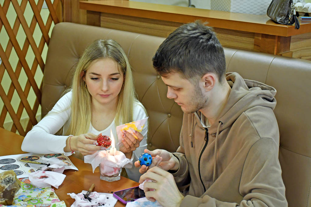 Кожен з гостей мав змогу підготувати по кілька писанок, вивчаючи запропоновану техніку. Учасники власноруч спробували пройти всі етапи написання справжньої писанки: створення візерунку, нанесення воску, фарбування та кінцеве оформлення.