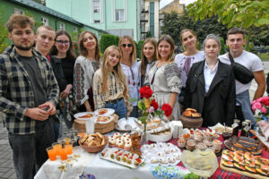 Столик від групи ММ-609 також вражає розмаїттям. Як запевняє кураторка групи, асистентка кафедри невідкладної медичної допомоги Ірина Ястремська, тут лише домашні страви. Цілковито все дівчата випікали самі: і пухкі кексики, що тануть у роті, і неймовірно смачні сінабони з корицею та кремом, і пиріжки за особливим сімейним рецептом, дбайливо поскладані у велику поливану макітру – щоб якомога довше зберігалися теплими.