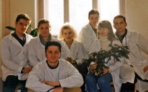 Наталія ВОЛКОВА (четверта ліворуч) зі студентами в приміщенні кафедри нормальної фізіології (1994 р.)