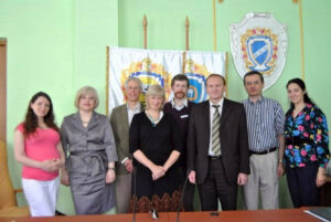 Організаційний комітет Міжнародного тренінгу «Лікар-пацієнт» PRIME (Партнерство у міжнародній медичній освіті, Великобританія) 13.05-15.05. 2013 р. Зліва направо: асист. О. ДРАПАК, доц. Наталія ВОЛКОВА, проф. Річард ВІНСЕНТ, голова виконавчого комітету, професор медицини Брайтонського медичного університету, доктор Рос СІМПСОН, старший клінічний викладач у медичній школі Саусхемптонського університету, доктор Аарон ПОППЛЕТОН, клінічний викладач PRIME, лікар внутрішньої медицини, проф. Ігор МИСУЛА, проректор з навчальної роботи ТДМУ, проф. Михайло КОРДА, декан факультету іноземних студентів ТДМУ, асист. О. БІДОВАНЕЦЬ