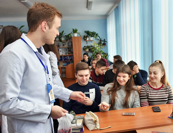 Спершу представники медичного факультету Юлія Валігура, Анастасія Бойко, Тетяна Карп’як, Ірина Демах і майбутній стоматолог Олександр Напханюк 23 березня провели кілька зустрічей зі школярами нашого міста.