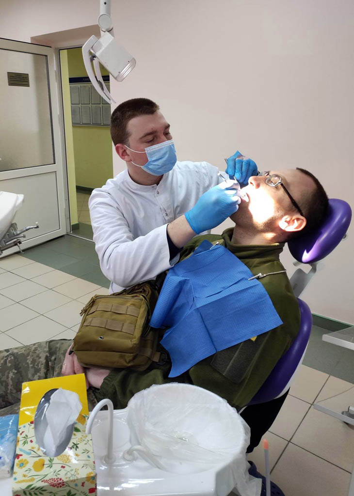 Молодший лейтенант медичної служби Володимир Дмитрович (його прізвище та назву частини не зазначаємо) наголошує, що хоча стоматологічна допомога від ТНМУ безкоштовна, та насправді вона – безцінна. «Уявляєте, потраплять мої хлопці-підопічні на передову, а там у них зуби заболять? – додає він. – Це нікому не потрібно, навіть і небезпечно. Боєць із зубним болем – який це боєць? Щиро вдячний ТНМУ за пропозицію пройти стоматологічне лікування військовослужбовцям, кожному, хто бажає та потребує цього, до виїзду на фронт. Наша військова частина – новостворена. Не можу її назвати, скажу лише, що понад 80 відсотків її складу – мешканці Тернопільської області, решта – внутрішньо переміщені особи. Лише одиниці, звернувшись за стоматологічною допомогою, отримують зубну гігієну чи усунення карієсу одного зуба, більшість потребують серйозного довготривалого лікування. Хтось затягнув із зверненням до лікаря, хтось не мав можливості – в кожного своя ситуація».