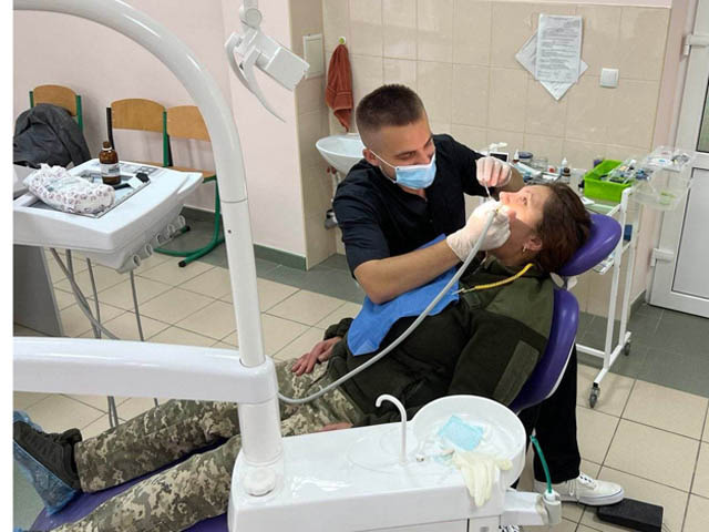 Надання безкоштовної стоматологічної допомоги військовим – один з напрямків волонтерської роботи Тернопільського національного медичного університету ім. Івана Горбачевського з перших днів повномасштабного вторгнення рашистів на українську землю. З ініціативи колективу викладачів стоматологічного факультету, за підтримки проректора з науково-педагогічної та лікувальної роботи Степана Запорожана й за рішенням ректора університету професора Михайла Корди на базі стоматологічного відділу університетської клініки ТНМУ торік на початку березня фахівці-стоматологи розпочали надавати невідкладну стоматологічну допомогу. Тут працюють реєстратура, рентгенологічний кабінет, кафедри стоматології ФПО, а також кафедри стоматологічного факультету – дитячої, ортопедичної, терапевтичної та хірургічної стоматології.