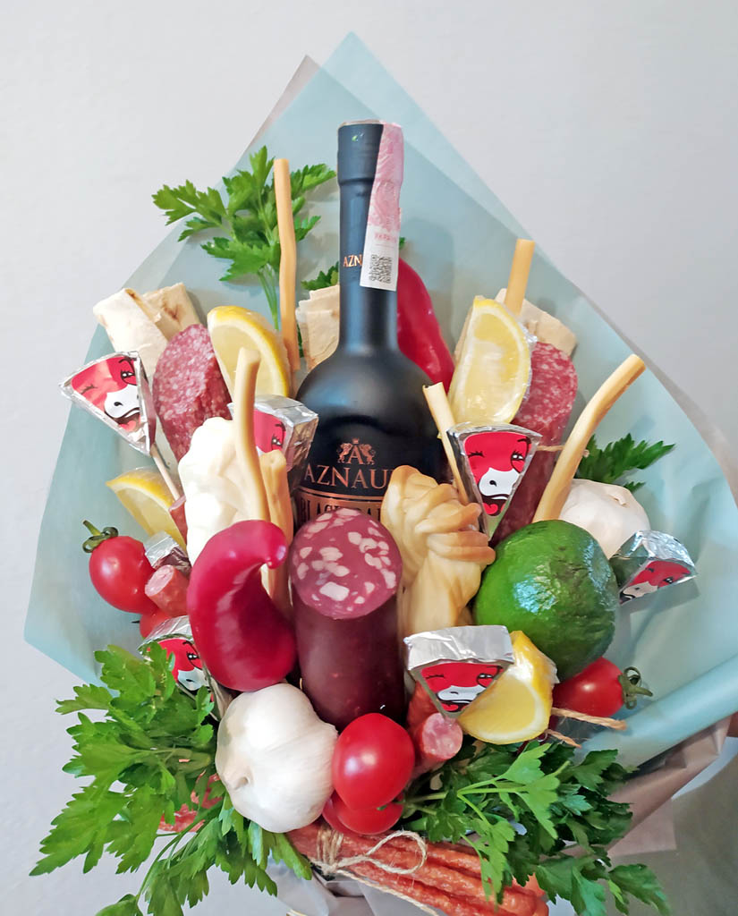 – Це вийшло дуже випадково. Хотіла подарувати свекру на день народження щось незвичайне. Довго гадала, аж доки подруга не підказала купити їстівний букет. Я почала шукати майстринь. Потім подумала, що й сама можу зробити не гірше. Так і почалася моя «букетна» історія. Скільки таких композицій зробила – важко сказати. Зазвичай дарую їх на день народження чи свята. Для жінок – переважно фруктові букети, а для чоловіків – традиційно м’ясні.